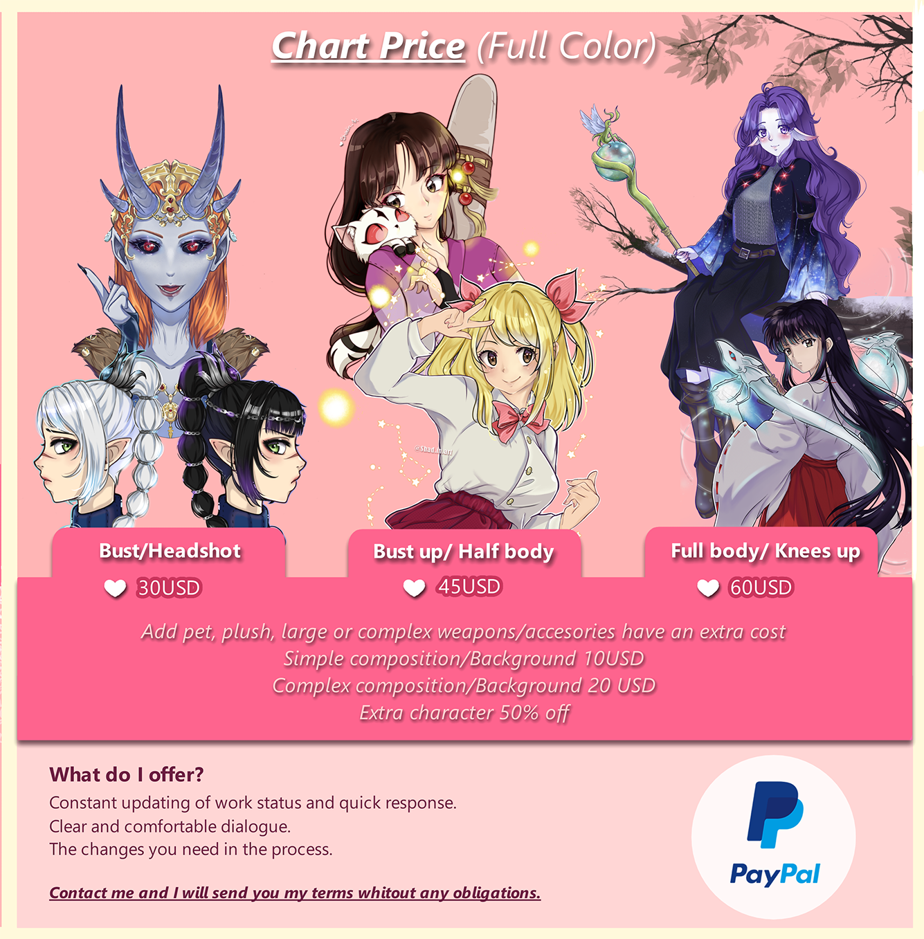 You can generate money in any way, you are the owner of the image and the rights belong to you to publish it in digital or traditional format, or include it in any type of article (mugs, prints, dakimakuras, etc.)200% of the final value obtained from the price table.Please inquire specifically about the job of interest.